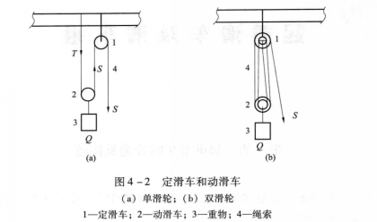 按滑車(chē)的使用方式分為定滑車(chē)和動(dòng)滑車(chē),如圖4—2所示。