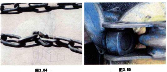 2、檢查葫蘆是否有碰、跌等外傷、各部軸、銷等磨損是否嚴(yán)重,如圖3.85所示。