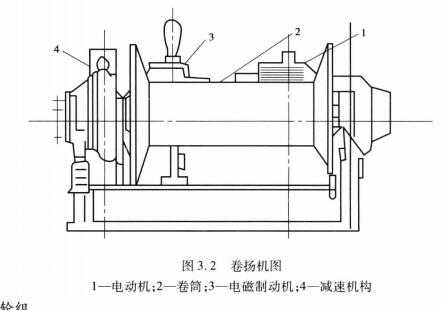 卷揚機又稱絞車,在結(jié)構(gòu)吊裝中是最常見的工具。它主要由電動機、電磁電筒制動器和減速機構(gòu)等組成,如圖3.2和圖3.3所示。