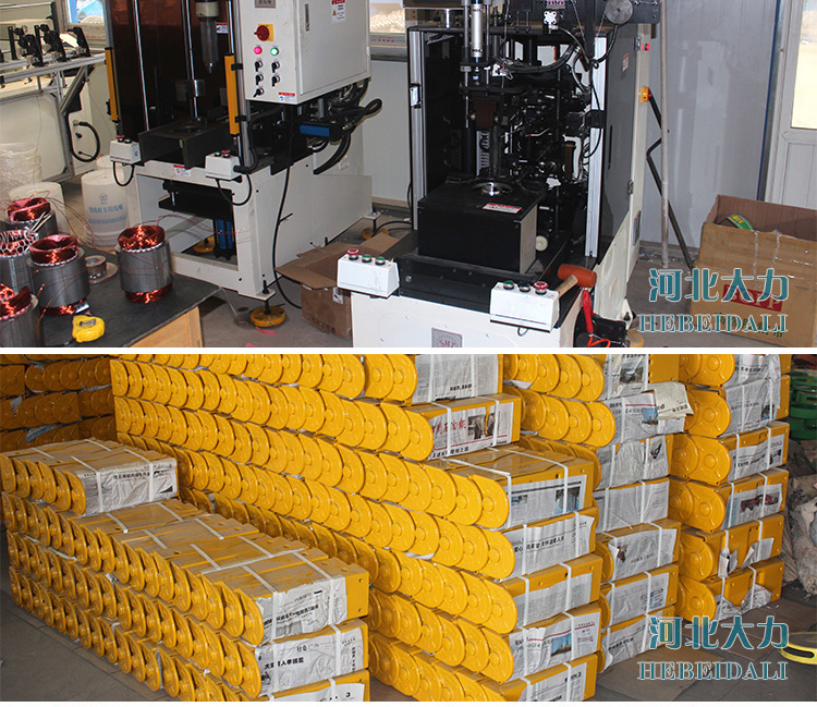 1、定子、轉(zhuǎn)子比市面上其他品牌電機(jī)同類(lèi)部件加長(zhǎng)1公分,使用更多銅線,確保電機(jī)升溫更慢,功率更大,起吊力量更有保障。