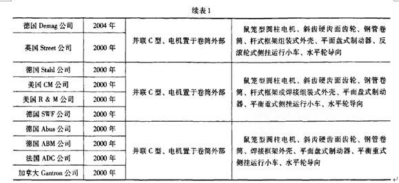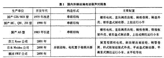 目前,國內外電動葫蘆產品存在構造特征、性能配置等方面仍存在一定差異,通過對國內外該類產品的比較,明示了其差異情況。如下表所示,1964年聯(lián)合設計的CD/MD葫蘆,在1975年設計改進之后,雖然各制造企業(yè)不同程度的改進,并未吸收世界進程中的任何技術發(fā)展。包括1983年引進德國stahl公司的AS鋼絲繩葫蘆,距離當代發(fā)達國家的產品水平,仍有數(shù)十年差距。