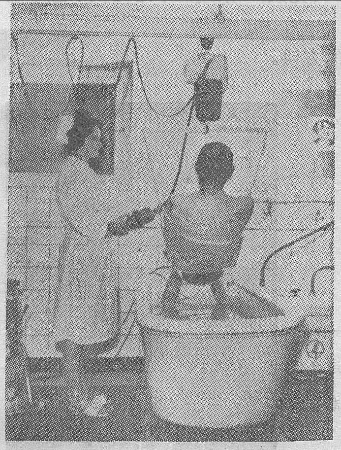 下圖是電動葫蘆用于醫(yī)療方面的情形。在目前醫(yī)院缺人的情況下,這種輔助工具是很有用的。圖中所示的設(shè)備表示病人不僅可以上升,而且可以作水平移動。如果沒有這個提升工具,移動這個病人需要配備兩名服務(wù)人員。